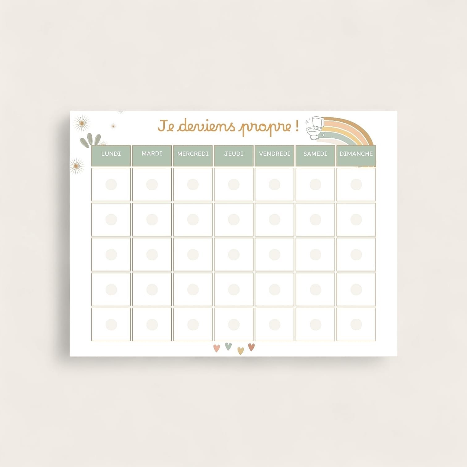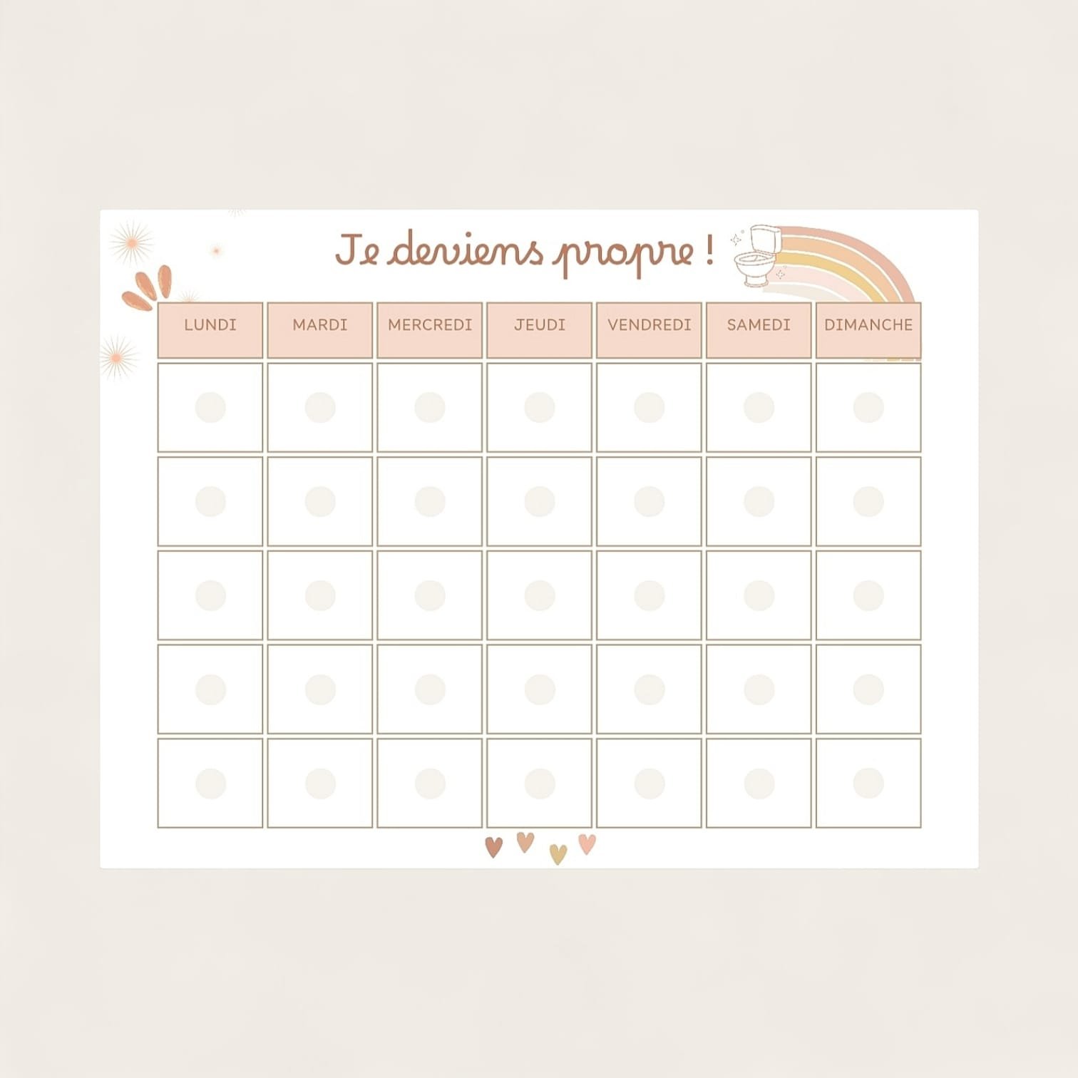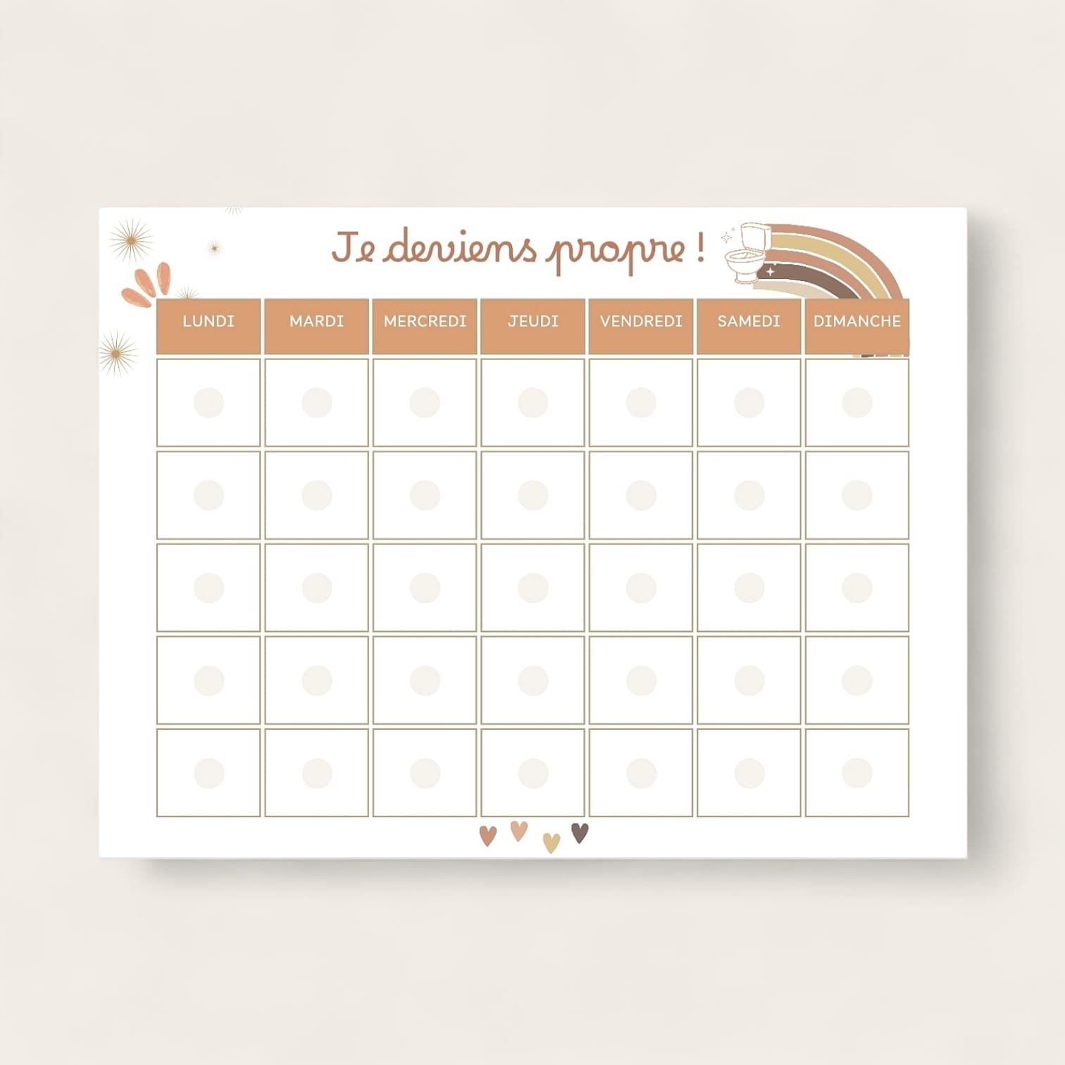 Le tableau « Je deviens propre » est un outil imaginé pour accompagner l’enfant, dès le plus jeune âge, dans l’acquisition de la propreté.