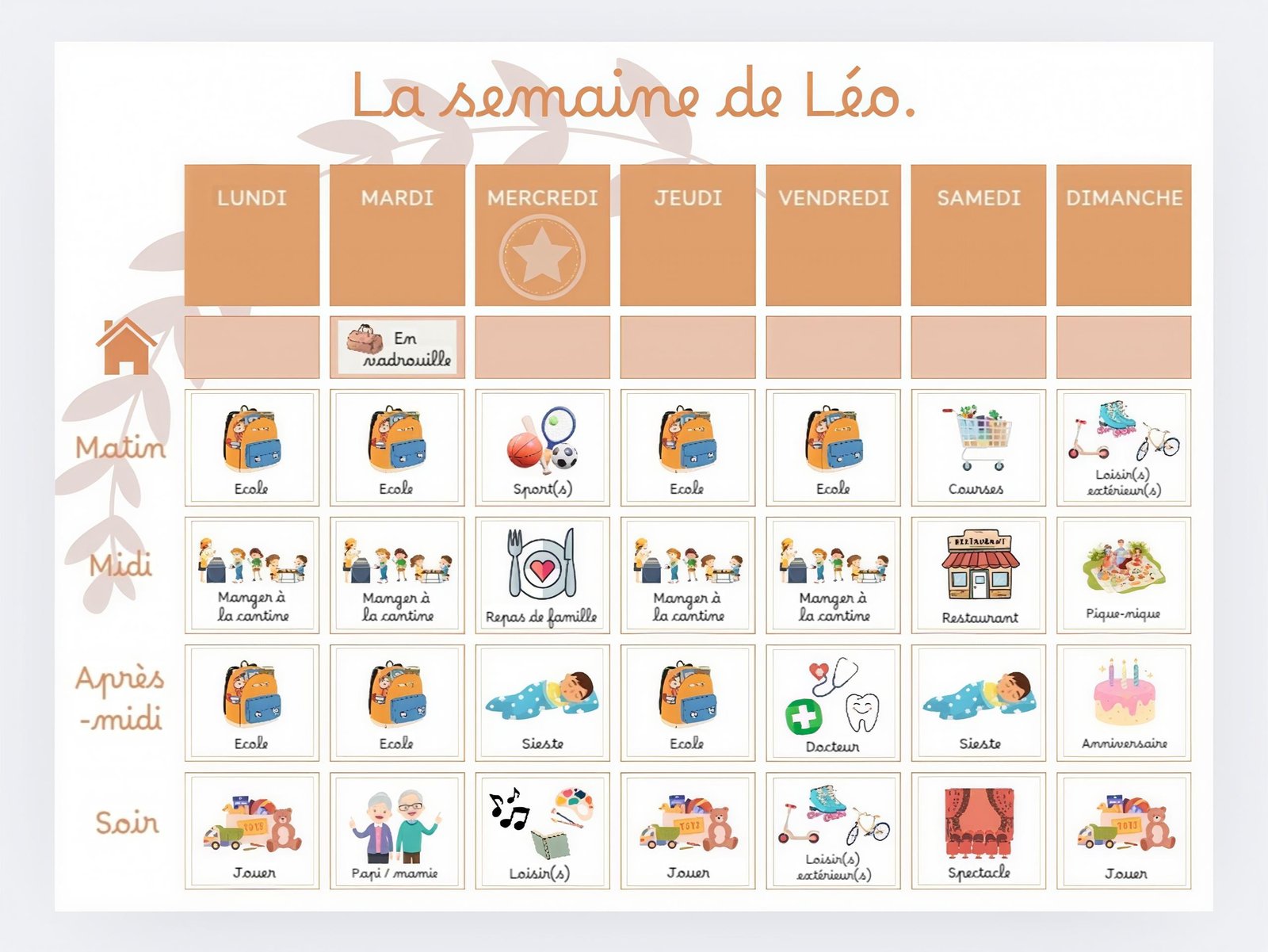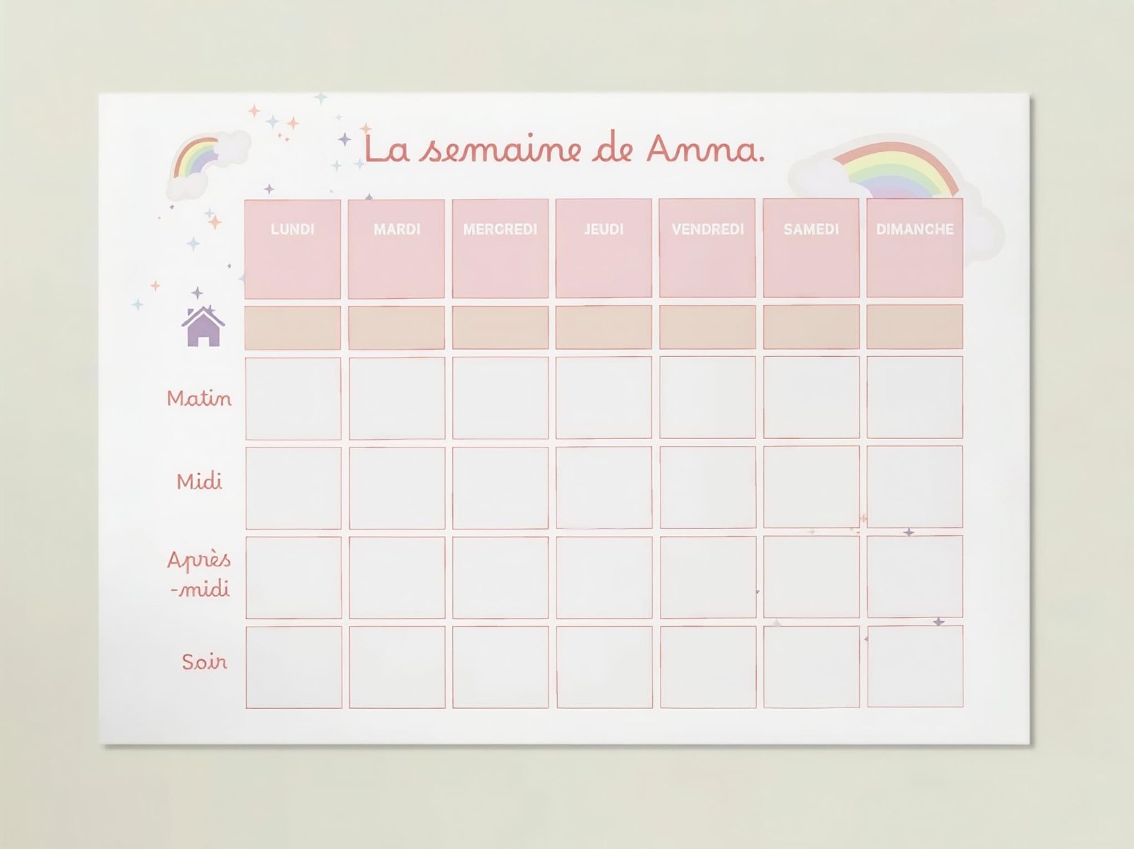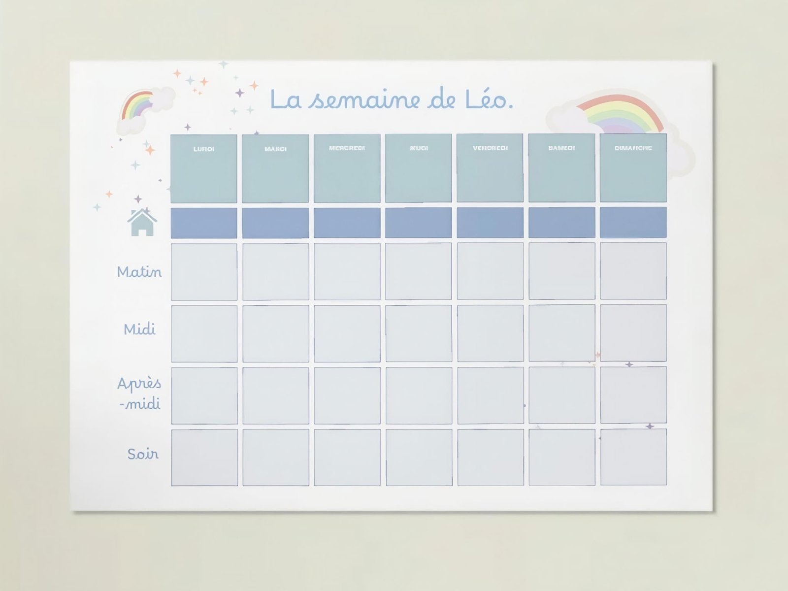 Le semainier est un outil imaginé pour aider l’enfant, dès le plus jeune âge, à se repérer dans le temps, à comprendre le fonctionnement d’une semaine.