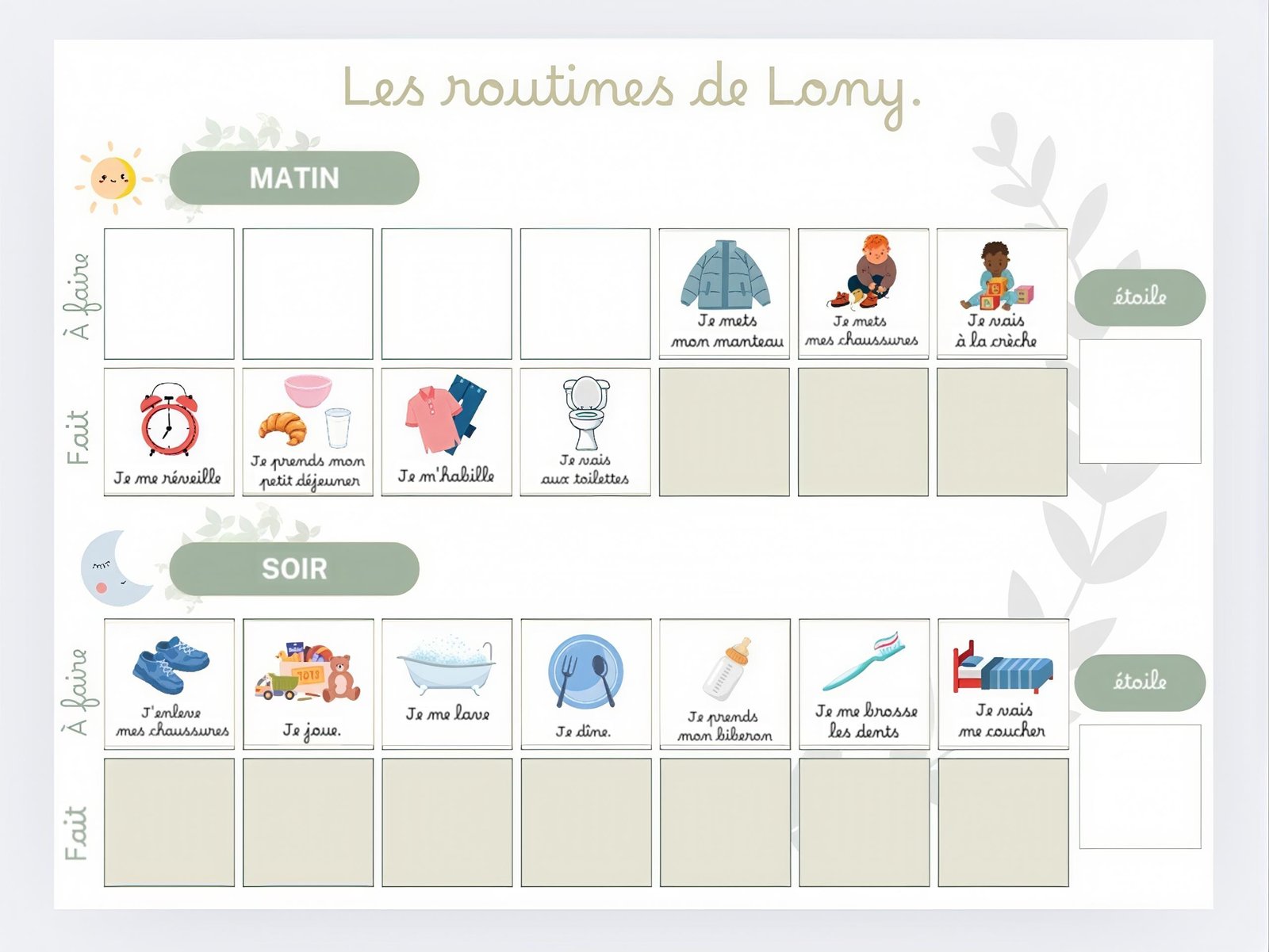 Le tableau de routines est un outil imaginé pour aider l’enfant, dès le plus jeune âge, à se repérer dans le temps.